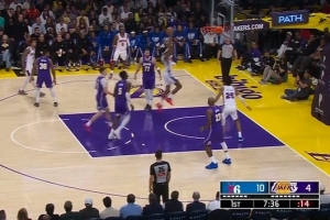 这都啥防守!埃奇库姆借掩护突破轻松双手飞扣 湖人全员目送