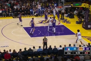 可惜!拉拉维亚底线起飞潇洒反篮上进 但被吹进攻犯规进球无效