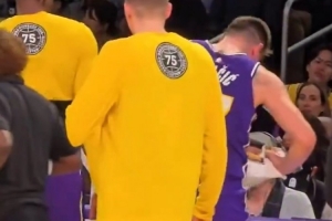 很沮丧!东契奇左腿筋不适回更衣室时 怒踢场边广告牌