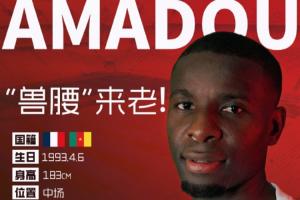 重庆铜梁龙官方:原上海申花中场阿马杜自由转会加盟球队