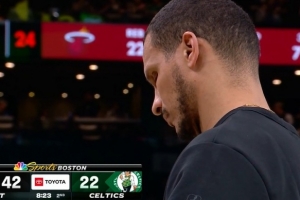 马祖拉看不下去了!维金斯接连追身三分命中 热火领先到20分!