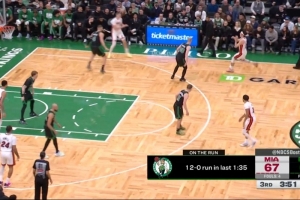 追到差6分了!普理查德虚晃后拉杆上篮2+1 绿军不到2分钟轰12-0