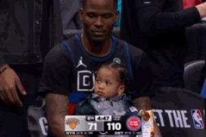 这松弛感!末节还有5分钟 贾旺特·格林替补席已经抱娃观战