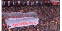 慕尼黑空难68周年,曼联球迷展示TIFO,卡里克与弗兰克赛前献花