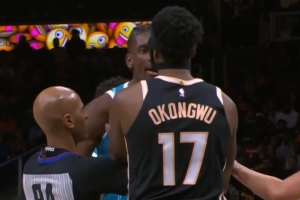 火气不小!迪亚巴特和奥孔武抢篮板互相推搡&发生小冲突 各自吃T