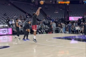 备战骑士生涯首战!哈登赛前着重练习三分球 期间连中五球