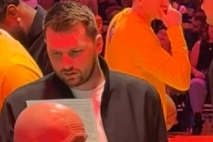 我看看怎么事儿!东契奇场边便装看技术统计表 表情非常严肃