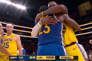 哥仨好!詹姆斯赛后分别和追梦&库里拥抱致意 和库里说悄悄话