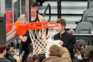 老乡见老乡!杨瀚森赛后与任嘉伦互换礼物 后者获得小杨签名球衣