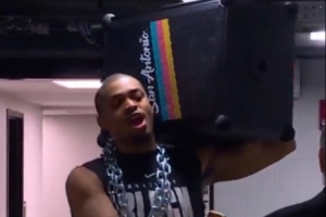 确实有点潮!光头凯尔登戴着大银链 扛着超大号音响热情高歌😂