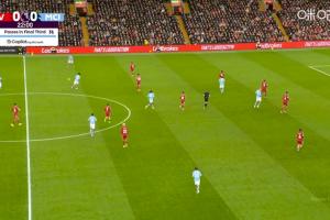 谁是主场?利物浦22分钟时进攻三区传球仅1次,曼城31次