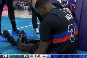 幸无大碍!贾旺特·格林反击起跳时被绊倒重摔 调整后继续作战