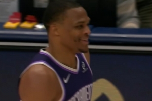 激情拉满!阿丘瓦上篮不中 威少冲刺跟进收板隔人补扣+开心笑了
