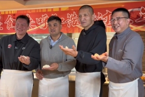 胡卫东、刘玉栋、朱芳雨和巴特尔一起包饺子 并祝愿大家小年快乐