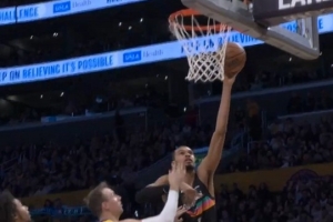 高度压制!文班错位单打肯纳德 碾到篮下转身单臂暴扣