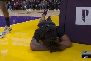 奋不顾身!卡斯尔追防大帽八村失衡落地重摔 久久起身&返回更衣室