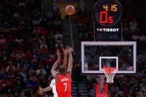 不难不进!杜兰特接球被破坏 进攻时间最后0.5秒强拔三分飙中