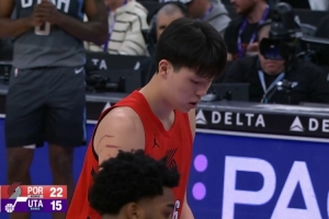 不容易!杨瀚森站上罚球线 胳膊上血痕依旧很明显