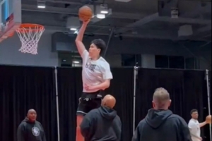 备战新秀赛!杨瀚森热身训练开启暴扣模式 根本停不下来!