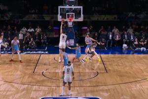 得分已上双!!杨瀚森横向切入篮下 接球一气呵成左手抛投命中!