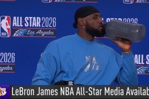 很符合老年人标准!詹姆斯全明星赛前采访 超大号水杯太抢镜😅