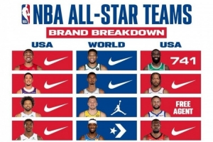 全明星三队球员代言球鞋!Nike旗下18人 第二多NB为3人 阿迪2人