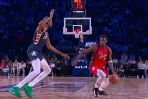 偶像就是用来挑战的!爱德华兹拜佛晃过杜兰特轻松上篮得分