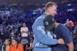也算是意难平组合了!东契奇和欧文在场边寒暄许久+拥抱
