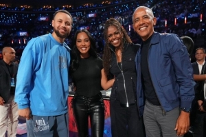 跨界联合!库里夫妇和美国前总统奥巴马夫妇合影留念