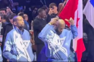 全明星开场仪式:詹姆斯给自己霸气戴王冠!杜兰特一旁鼓掌~