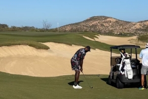 假期愉快!詹姆斯自拍晒在外打高尔夫