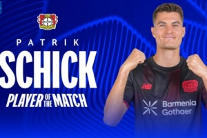 3分钟梅开二度,官方:希克当选勒沃库森2-0奥林匹亚科斯最佳球员