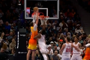 内线守不住!黄蜂追打申京 卡尔克布伦纳空接暴扣打进加罚