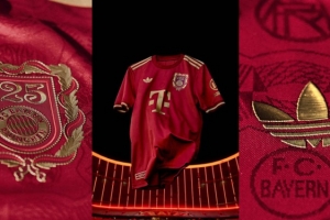 这款独特的特别版球衣延续了传统的红色,并配以金色的品牌标志,与去年的备用球衣和啤酒节球衣一样,采用了阿迪达斯Originals品牌的三叶草标志。精巧的设计也将深深植根于俱乐部历史和DNA的细节与现代而经典的外观相结合,此外所设计的纪念徽章则融入了成立文件中的元素、盾形纹章以及巴伐利亚的月桂花环元素,金色的细节则为设计增添了现代感。