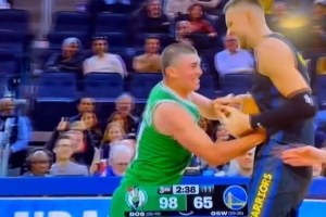 一看分差30+!波尔津吉斯和普理查德争抢篮球 笑哈哈互不相让