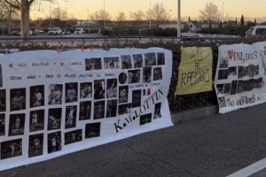 体育资讯2月21日讯 皇家马德里球迷在球场外挂起横幅,声援维尼修斯以及姆巴佩,以示对他们反种族歧视斗争的支持。