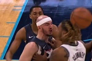 有点火气!卡鲁索和克洛尼争抢中相互推搡 双方各吃1T