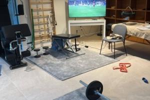 因伤缺战的赫伊森更新社媒,在健身房观看皇马比赛