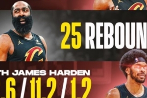 哈登加盟5连胜揽92分43助25板 阿伦化身顶级中锋场均22.6+11.2!
