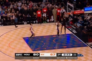 这不欺负人嘛!阿门抢断布伦森直接暴扣打停尼克斯 布伦森被防麻