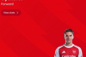 梅开二度!英超官方:约克雷斯当选阿森纳4-1热刺全场最佳球员