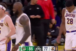 打停绿军!老詹、八村相继篮下强硬打中 助攻皆来自里夫斯