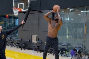 打磨手感!湖人官方晒詹姆斯练习三分:五个位置连续投进10记三分
