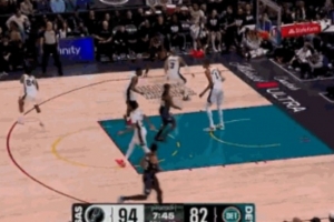 很谨慎啊!坎宁安助攻勒韦尔命中底角三分球 马刺迅速喊停