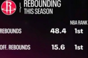 火箭本赛季场均篮板&进攻篮板均联盟第1 二次进攻得分第2
