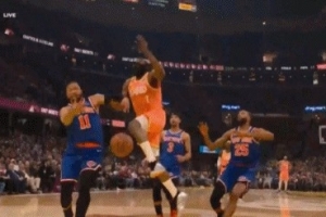 骑士防守呢?巴恩斯反击一马平川 直冲篮下暴扣得手