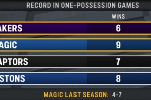 都是关键球强队!一回合定胜负的比赛:湖人6胜0负 魔术9胜3负
