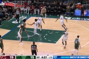 今天射手准!AJ·格林底角大空位三分再中 雄鹿一波9-0反超骑士