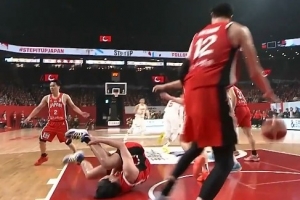 担架又来了!渡边飞勇落地时出现崴脚 随即被换下