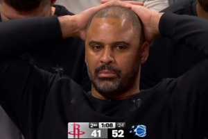 给乌度卡投懵了!贝恩三分球再中 乌度卡场边双手抱头面无表情